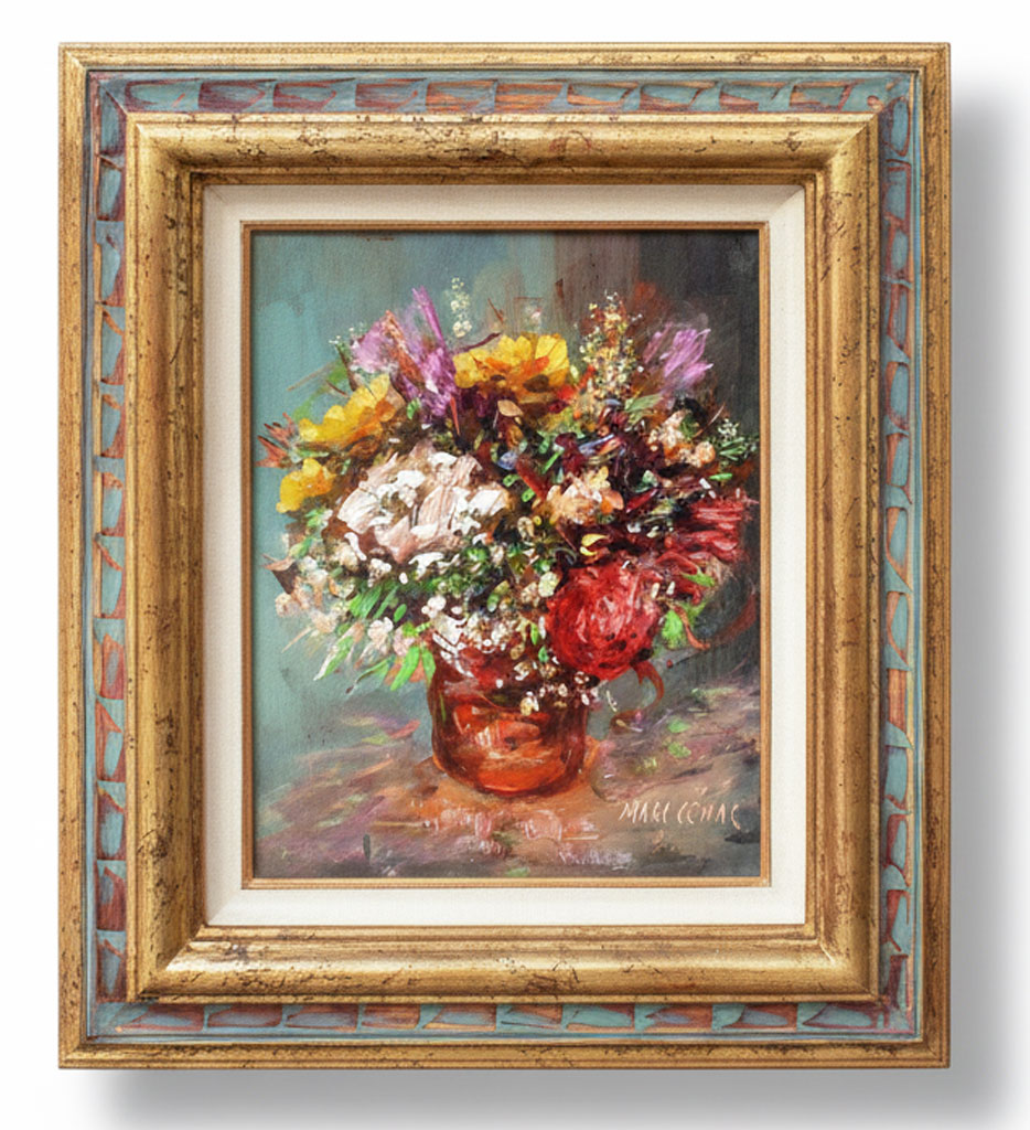 Angles gravés or vieux bleu