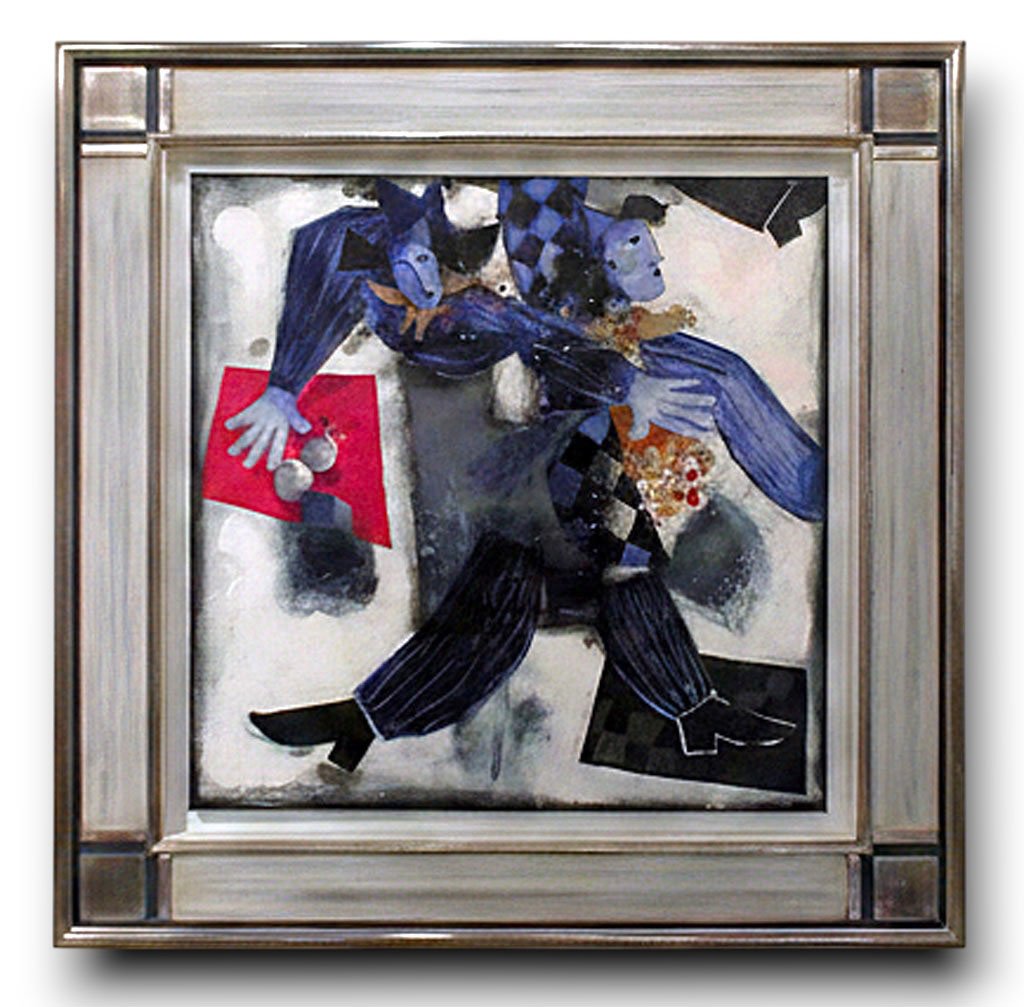 Sculpté losanges argent bleu