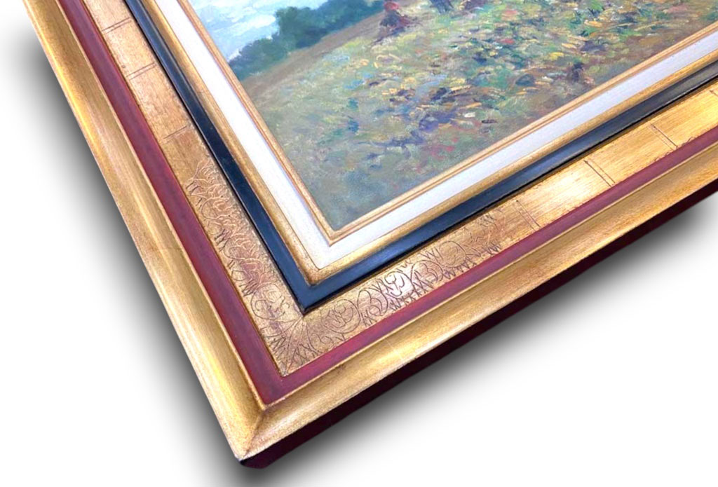 Angles gravés or fin rouge noir