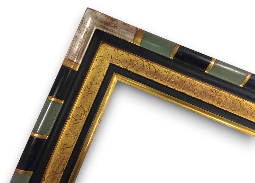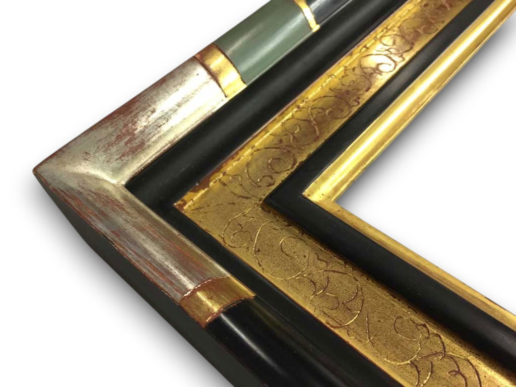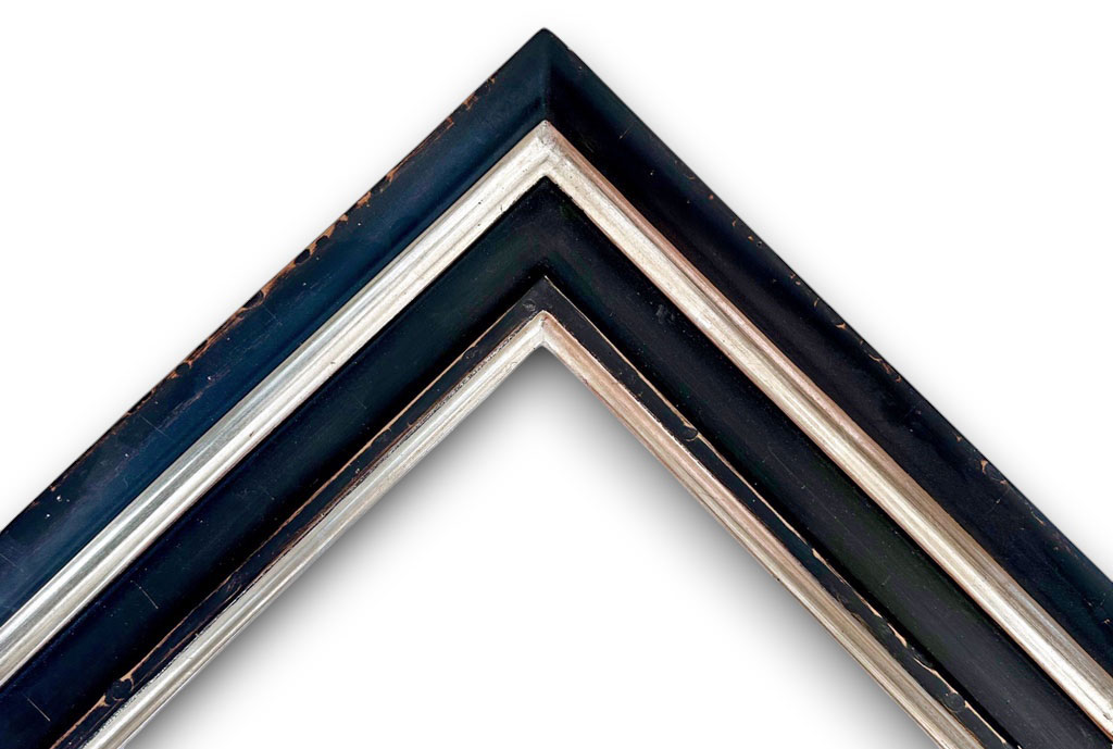 Noir antique filet et gorge or blanc patiné usé